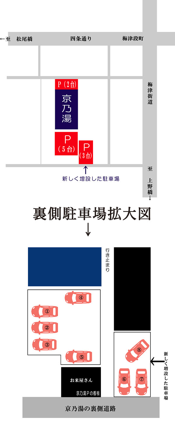 京乃湯の裏側駐車場の隣の土地も借り上げ、京乃湯のお客様専用駐車場として増設させていただきました!